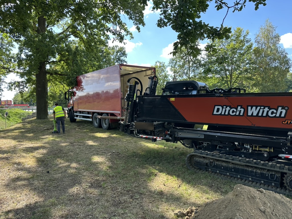 Řízené zemní protlaky umíme realizovat v dlouhých trasách – obvykle provádíme protlaky pod silnicí a protlaky pod dalšími typy komunikací jako jsou dálnice, koleje nebo vodní překážky (řeky, jezera, atd.), do DN 600 mm a délky přes 200 m.